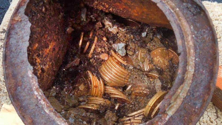 Նրանք իրենց շան հետ սեփական հողատարածքում ման էին գալիս, երբ ինչ որ փայլուն բան տեսան գետնին: Ամուսինը որոշեց փորել կասկածելի տարածքը և գտավ 8 մետաղյա տարաներ լցված 1400-ից ավել ոսկե մետաղադրամով: