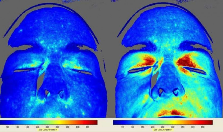 ԼԱՅՖԼուսանկարում աջից վերևում դուք տեսնում եք դիմային արյան շրջանառության բարելավում բոբիկ քայլելուց 20 րոպե անց: Մուգ կապույտը արյան շրջանառության ցածր մակարդակն է, մուգ կարմիրը՝ բարձր մակարդակը: Ներկայացնում ենք հողի հետ բոբիկ շփման առավելությունները: