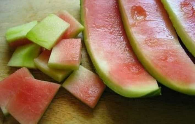 Ձմերուկի կեղևը կարելի է անցկացնել քերիչով և այն օգտագործել աղցանների, ապուրների մեջ։
