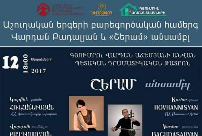Աշուղ Շերամի 160 ամյակին նվիրված համերգի հասույթը կտրամադրվի «Գյումրին առանց տնակների» հիմնադրամին