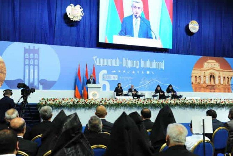 Սերժ Սարգսյանը նշեց, որ տեսնելով Թուրքիայի շարունակական ուրացումը, որը Հայոց ցեղասպանության 100-րդ տարելիցի նախօրեին դարձավ պարզապես արհամարհանք ժամանակակից քաղաքակրթության արժեքների նկատմամբ, միջազգային հանրությունը և հայկական սփյուռքը պետք է հետամուտ լինեն նոր ռազմավարության: «Աշխարհի շատ առաջատար երկրներ արդեն իսկ ճանաչել և դատապարտել են Հայոց ցեղասպանությունը: Այս երկրներում ապրող մեր հայրենակիցները կարող են հպարտությամբ հռչակել իրենց հաղթանակը, և այդ հպարտությամբ կարող ենք աշխատել այդ երկրների հետ նոր օրակարգի ձևավորման ուղղությամբ»,- ընդգծեց ՀՀ Նախագահը: