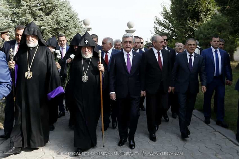 ՔԱՂԱՔԱԿԱՆՀայաստանի Հանրապետության անկախության 26-րդ տարեդարձի առթիվ Նախագահ Սերժ Սարգսյանը Արցախի Հանրապետության Նախագահ Բակո Սահակյանի, Ն.Ս.Օ.Տ.Տ. Գարեգին Բ Ծայրագույն Պատրիարք և Ամենայն Հայոց Կաթողիկոսի, Մեծի Տանն Կիլիկիո Կաթողիկոս Ն.Ս.Օ.Տ.Տ. Արամ Առաջինի հետ, Երևանի քաղաքապետ Տարոն Մարգարյանի և Հանրապետության բարձրագույն ղեկավարության ուղեկցությամբ այսօր այցելել է «Եռաբլուր» զինվորական պանթեոն՝ հարգանքի տուրք մատուցել իրենց կյանքը Հայրենիքի անկախության համար զոհաբերած հայորդիների հիշատակին: