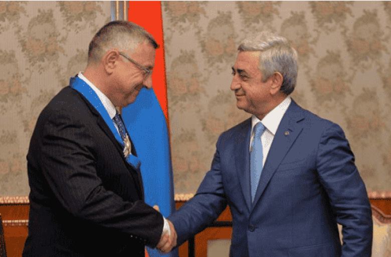 ՀԱՍԱՐԱԿՈՒԹՅՈՒՆՆախագահ Սերժ Սարգսյանն այսօր ընդունել է Ամերիկայի հայկական համագումարի համանախագահ Վան Գրիգորյանին: Ինչպես տեղեկացրին ՀՀ Նախագահի աշխատակազմի հասարակայնության և տեղեկատվության միջոցների հետ կապերի վարչությունից, Հանրապետության Նախագահը Հայրենիք-սփյուռք կապերի ամրապնդման գործում ներդրած նշանակալի ավանդի, ինչպես նաև երկարամյա հայրենանպաստ գործունեության համար Ամերիկայի հայկական համագումարի համանախագահ Վան Գրիգորյանին հանձնել է պետական բարձր պարգև՝ Պատվո շքանշան, որով նա Նախագահի կողմից պարգևատրվել է Անկախության օրվա կապակցությամբ: