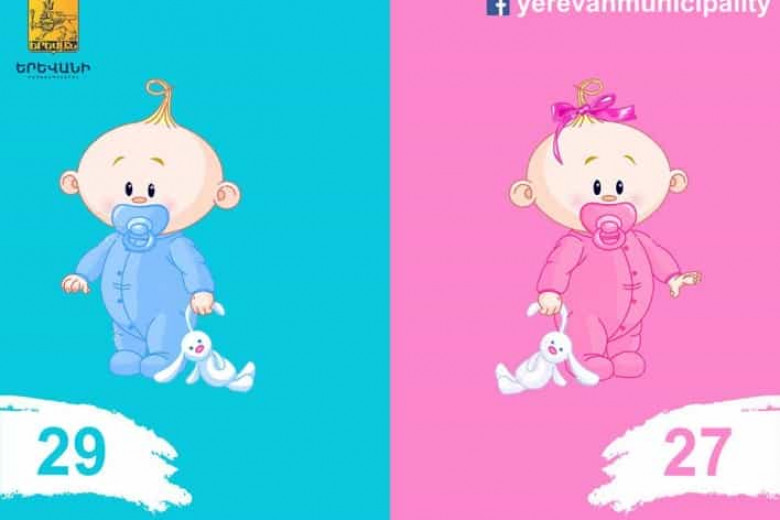 ՀԱՍԱՐԱԿՈՒԹՅՈՒՆԵրևանի քաղաքապետարանի աշխատակազմի առողջապահության վարչությունից հայտնում են, որ հոկտեմբերի 2-ին մայրաքաղաքում ծնվել է 56 երեխա՝ 29 տղա, 27 աղջիկ:
