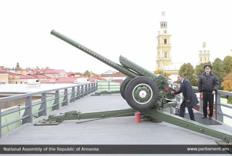 Դեռեւս Պետրոս Առաջինի ժամանակաշրջանից սկիզբ առած ավանդույթի համաձայն՝ Նարիշկինի աշտարակից ամեն օր թնդանոթի համազարկով ազդարարվում է կեսօրը: Համազարկի իրավունք վերապահվում է նաեւ Սանկտ Պետերբուրգ այցելած պատվավոր հյուրերին: Հոկտեմբերի 14-ին ավանդական թնդանոթային համազարկն իրականացրել է ՀՀ ԱԺ նախագահ Արա Բաբլոյանը: