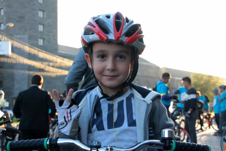 Հեծանվորդները տոնական երթն անց են կացրել հեծանիվներին ամրացված Երևանի դրոշներով: