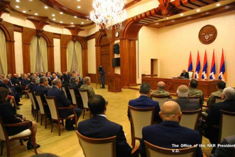 Խորհրդակցության մասնակիցներին Նախագահը ներկայացրել է իր հրամանով նշանակված Արցախի Հանրապետության պաշտպանության բանակի N 19916 զորամասի հրամանատարի առաջին տեղակալ-շտաբի պետ, գեներալ-մայոր Կարեն
