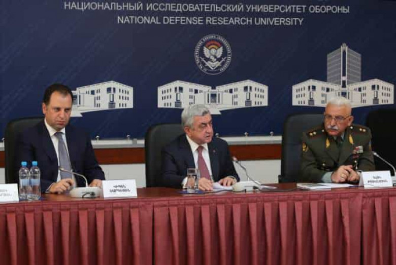 ՔԱՂԱՔԱԿԱՆՀՀ ՊՆ Պաշտպանական ազգային հետազոտական համալսարանի պետ, գեներալ-լեյտենանտ, քաղաքական գիտությունների դոկտոր, պրոֆեսոր Հայկ Քոթանջյանը զեկուցում է ունեցել ՀՀ ՊՆ Պաշտպանական ազգային հետազոտական համալսարանի կրթական գործունեության մեկնարկը ազդանշող հանդիսավոր նիստում: Ինչպես «Արմենպրես»-ին հաղորդեցին ՀՀ ՊՆ Պաշտպանական ազգային հետազոտական համալսարանից, նիստին մասնակցում էին ՀՀ Նախագահ, Զինված ուժերի գերագույն գլխավոր հրամանատար Սերժ Սարգսյանը, ՀՀ պաշտպանության նախարար Վիգեն Սարգսյանը, ՀՀ ՊՆ և ՀՀ Զինված ուժերի բարձրագույն ղեկավար կազմը, ՊԱՀՀ-ի գիտնական-վերլուծաբանները: Ներկայացնում ենք զեկուցումն ամբողջությամբ: