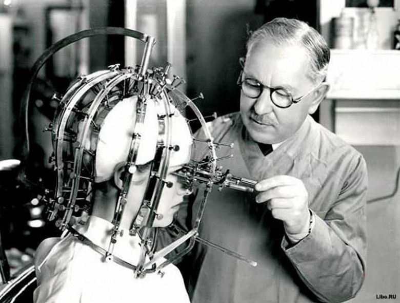 Այս հարմարանքը կանայք կրում էին ողջ գիշեր` առավոտյան թշերին փոսիկներ ունենալու համար, 1936 թ.