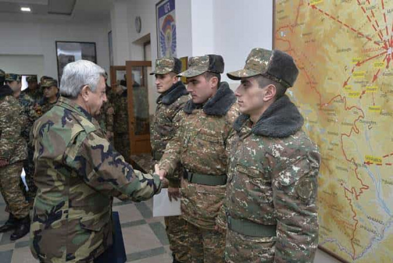 Սերժ Սարգսյանն ու Բակո Սահակյանն Արցախում խրախուսել են աչքի ընկած զինծառայողներին