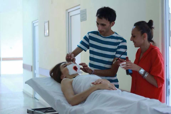 Իննան պատմել է, որ բժշկական միջամտության կարիք է եղել, ու ծնոտին 4 կար են դրել.«Խուսափում էի ոչ էսթետիկ վիճակում երեւալ էկրաններին, բայց սցենարիստի հետ համաձայնության եկանք. որոշվեց, որ Անին էլ կընկնի ու կվնասի դեմքը: Դեպքից մի շաբաթ անցել է, բայց դեռ վիրակապով եմ, կարերը չեն հանել: Ամեն ինչ արվել է, որ սպի չմնա, հուսամ` շուտ կապաքինվեմ»: