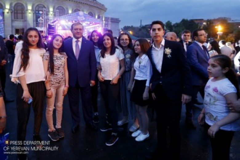 Երևանի քաղաքապետը շրջել է Ազատության հրապարակում, շնորհավորել ու իր բարեմաղթանքներ է հղել շրջանավարտներին: