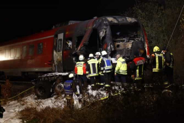 Միջադեպը տեղի է ունեցել Բավարիայի երկրամասի Ֆրայունգ կոմունայում: Նշվում է, որ գնացքը, որում եղել է շուրջ հիսուն ուղեւոր, բեռնատարի է հարվածել անցուղում եւ այն իր հետ երկաթուղային պաստառով քարշ է տվել շուրջ մեկ կիլոմետր: Բախումից հետո գնացքը եւ բեռնատարը բռնկել են:
