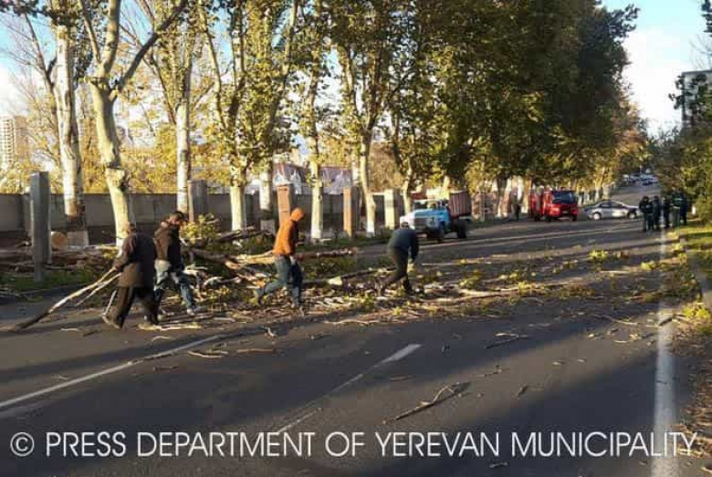 Տապալված ծառերի հարևանությամբ գտնվող բոլոր փողոցները երթևեկելի են: Ծառերի տապալման հետևանքով ոչ ոք չի տուժել: