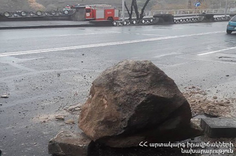 Երևանի Աթենքի փողոցում մոտ 15 կիլոգրամանոց քարեր են թափվել ճանապարհի վրա
