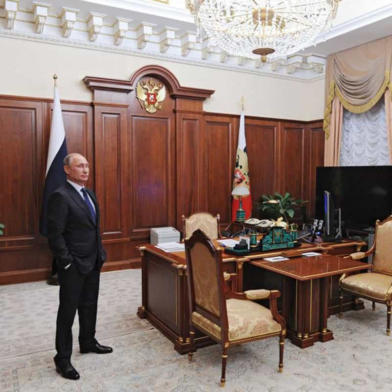 1. Ռուսաստան-ՌԴ նախագահ Վլադիմիր Պուտինի աշխատասենյակը գտնվում է նստավայրի գործարար մասում: Սենյակը առանձնապես մեծ չէ: Պատերի երկայնքով գրապահարաններ են: Սեղանի վերևում ՌԴ զինանշանն է:
