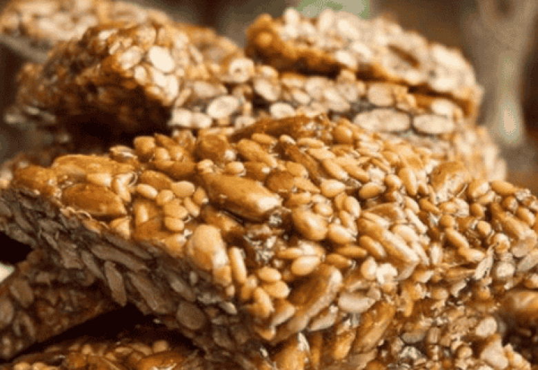 Վերցնել կրակից, խոհանոցային թուղթը պատել կարագով, լցնել արևածաղկով զանգվածը հավասար շերտով, դանակով կտրատել ու թողնել սառչի։