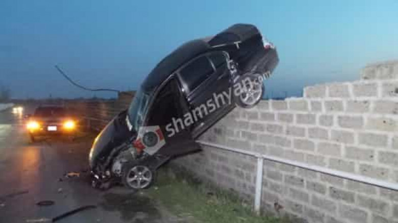 ՃՏՊ Արարատի մարզում. BMW-ն հայտնվել է պարսպի վրա (լուսանկարներ). Shamshyan.com