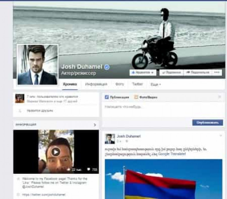 Հայտնի հոլիվուդյան դերասան՝ Ջոշ Դյուամելը իր ֆեյսբուքյան էջում Հայերեն գրառում է կատարել հետևյալ տեքստով՝
