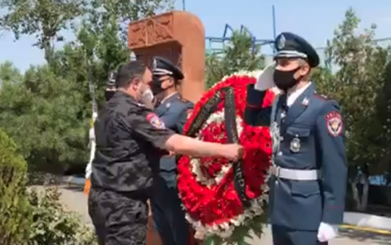 ՀԱՍԱՐԱԿՈՒԹՅՈՒՆՈստիկանության ղեկավար կազմը ծաղիկներ է խոնարհում 2016 թվականին ՊՊԾ գնդում ծառայողական պարտականությունները կատարելիս զոհված ոստիկանների հիշատակը հավերժանցնող հուշարձանին: