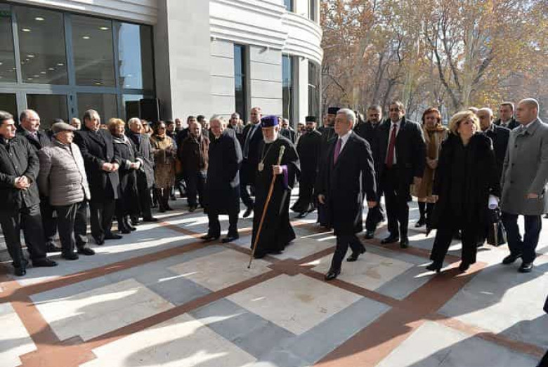 ՀԱՍԱՐԱԿՈՒԹՅՈՒՆՀՀ Նախագահ Սերժ Սարգսյանը դեկտեմբերի 5-ին մայրաքաղաքում ներկա է գտնվել նորակառույց կառավարական վարչական համալիրի բացմանը՝ Վազգեն Սարգսյան 3 հասցեում, որի շինարարության մեկնարկից՝ 2013թ. ապրիլից ի վեր, Հանրապետության Նախագահը պարբերաբար այցելել և հետևել է աշխատանքների ընթացքին: