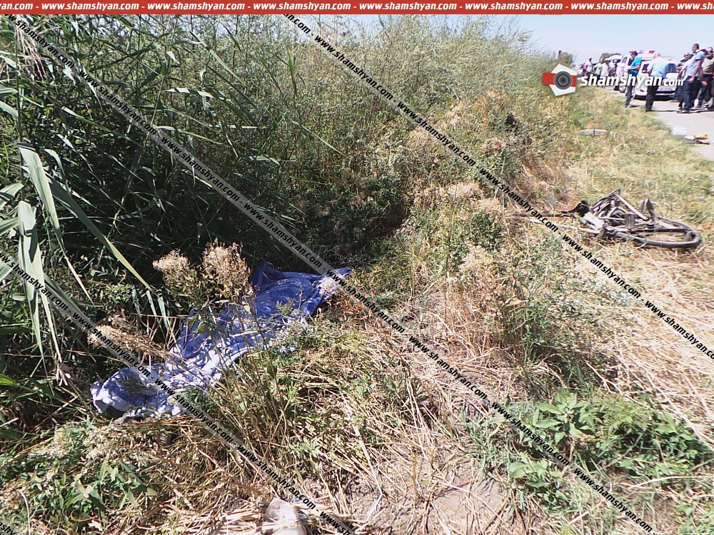Ինչպես դեպքի վայրից հայտնում է ֆոտոլագրող Գագիկ Շամշյանը, վրաերթի ենթարկվածը, ով հեծանվով է եղել, շպրտվել է երթևեկելի գոտուց դեպի ջրափոսի մեջ և տեղում մահացել։