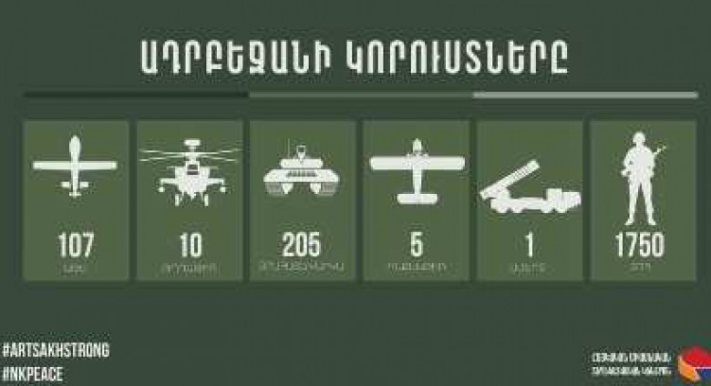 Ըստ այդմ, սեպտեմբերի 27-ից ի վեր Ադրբեջանի զինուժը կրել է հետեւյալ կորուստները.