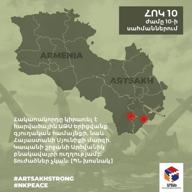 ԲԼՈԳՀակառակորդը կիրառել է հարվածային ԱԹՍ Երիցվանք գյուղական համայնքի, նաև Հայաստանի Սյունիքի մարզի, Կապանի շրջանի Արծվանիկ բնակավայրի ուղղությամբ։ Տուժածներ չկան։