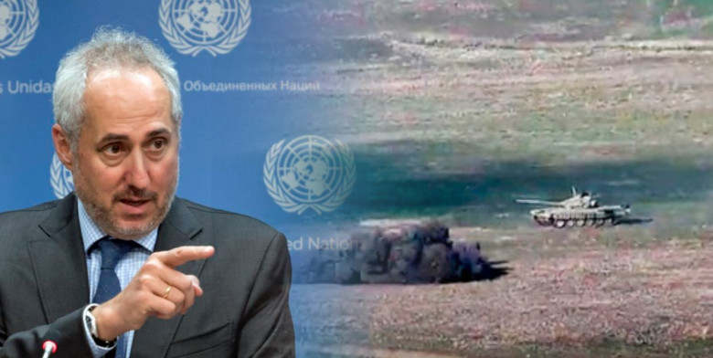 «ՄԱԿ-ի Գլխավոր քարտուղարը շարունակում է խիստ մտահոգված լինել շարունակվող ռազմական գործողություններով, հատկապես դրա ազդեցությամբ քաղաքացիական բնակչության վրա: Մենք շատ անհանգստացած ենք խաղաղ բնակզության իրավիճակով: Անհրաժեշտ է կրկնել, որ խստորեն դատապարտում ենք քաղաքացիական անձանց կամ քաղաքացիական ենթակառուցվածքների ցանկացած թիրախավորում կամ հարձակում: Գլխավոր քարտուղարը շարունակել է իր անձնական ներգրավվածությունն այս հարցում: Նա երեկ զրուցել է Հայաստանի արտգործնախարարի հետ: Այսօր նա նախատեսում է ինչ-որ պահի, և դա կարող է շատ շուտ լինել՝ այսօր կեսօրին, զրուցել Ադրբեջանի արտգործնախարարի հետ: Երկու կողմերին ուղղված նրա ուղերձը պարզ է. կարևոր է, որ նրանք իրականացնեն և լիովին պահպանեն հրադադարի ռեժիմը, որի շուրջ որպես առաջնահերթություն մարդասիրական նպատակներից ելնելով՝ նրանք պայմանավորվածություն են ձեռք բերել: Նա նաև շեշտում է, որ ՄԱԿ-ը պատրաստ է օգնելու մարդասիրական կարիքների հարցում, եթե լինի դրա պահանջը: Եվ եթե պայմանները թույլ են տալիս, անհրաժեշտ է պատրաստվել համապատասխան աշխատանքի բոլոր շահագրգիռ կողմերի հետ: Կարծում եմ, որ այս հակամարտությունը դինամիկ է: Շատ կարևոր է, որ երկու կողմերն էլ շատ արագ շարժվեն դեպի դեէսկալացիա, քանի որ ակնհայտորեն առկա է հակամարտության ընդլայնման, տարածաշրջանի հետագա ապակայունացման վտանգ: Մեզ համար քաղաքական առումով ուշադրության կենտրոնում է մնում կողմերի՝ ԵԱՀԿ Մինսկի խմբի համանախագահների հովանու ներքո բանակցություններին վերադառնալու հարցը»:
