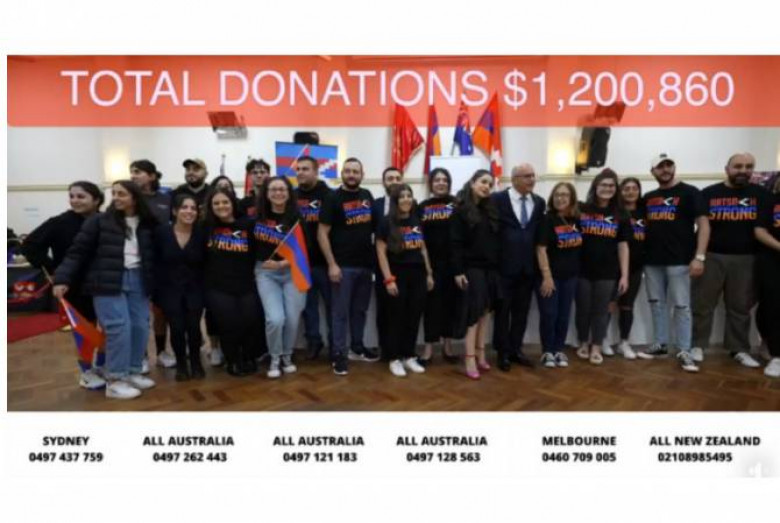 ՀԱՍԱՐԱԿՈՒԹՅՈՒՆԱրցախին աջակցություն ցուցաբերելու համար Ավստրալիայի և Նոր Զելանդիայի հայ համայնքի կողմից անցկացված հեռուստամարաթոն-դրամահավաքի ընթացքում եղել է 1 մլն 260 հազար 860 դոլարի նվիրատվության խոստում: Հեռուստամարաթոն-դրամահավաքն անցկացվել է «Արցախն ուժեղ է» խորագրի ներքո:
