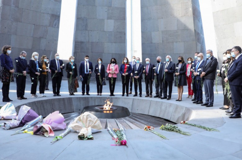 Ֆրանսիայի խորհրդարանական պատվիրակությունը հարգանքի տուրք մատուցեց Ծիծեռնակաբերդի հուշահամալիրում