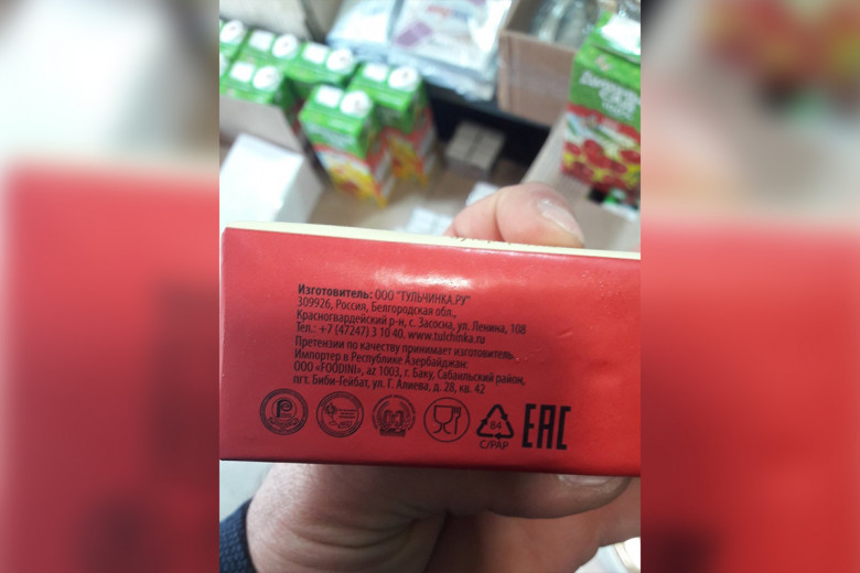 ՀԱՍԱՐԱԿՈՒԹՅՈՒՆՀՀ սննդամթերքի անվտանգության տեսչական մարմնի մասնագետները, սննդի շղթայի կազմակերպություններում վերահսկողական գործունեություն իրականացնելիս, Երևանի «Սուրմալու» մանրամեծածախ շուկայում հայտնաբերել են սննդամթերք՝ նախատեսված Ադրբեջանի համար: