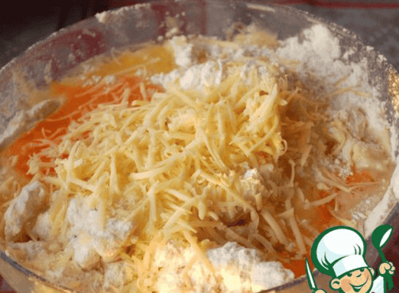 Ավելացնել 50 գրամ պանիրը, ալյուրը, ձուն, միախանել։