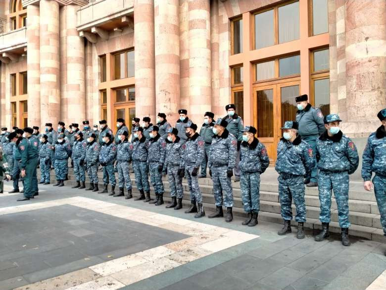 Մեծ թվով ոստիկանական ուժեր՝ կառավարության շենքի դիմաց