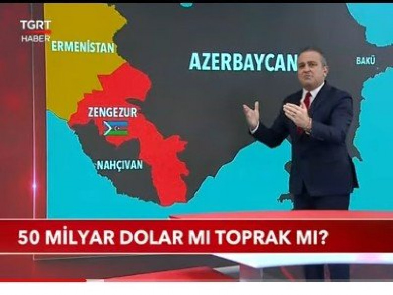 ՔԱՂԱՔԱԿԱՆԹուրքական TGRT հեռուստաընկերության լուրերի եթերում հաղորդավար Էքրեմ Աչըքելը լայն անդրադարձ է կատարել Հայաստանում տիրող իրավիճակին եւ Ադրբեջանի կողմից Հայաստանին ներկայացրած 50 մլրդ դոլար փոխհատուցման մեխանիզմին։ Թուրք մեկնաբանը նշել է, որ Ադրբեջանը եւ ադրբեջանական ժողովուրդը փոխհատուցում են պահանջում Հայաստանից, որը կազմում է 50 միլիարդ դոլար։ Էքրեմ Աչըքելը նշում է, որ Հայաստանը քանի որ չի կարող վճարել 50 մլրդ փոխհատուցումը, կհանձնի Զանգեզուրը, որի միջոցով արդեն Թուրքիան լրիվ կկապվի Ադրբեջանի հետ։ Թուրք մեկնաբանը նշել է. «Հայաստանը կյանքում չի կարող 50 մլրդ դոլար վճարել եւ եթե Փաշինյանը Զանգեզուրը տա, բոլորովին չզարմանաք»։