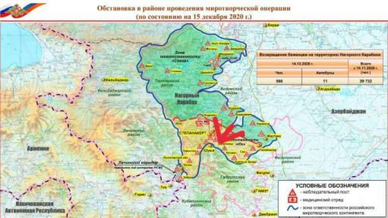 ՀԱՍԱՐԱԿՈՒԹՅՈՒՆՌուսաստանի ՊՆ-ն հրապարակել է դեկտեմբերի 14-ի դրությամբ Արցախում իրավիճակի մասին հերթական քարտեզը: