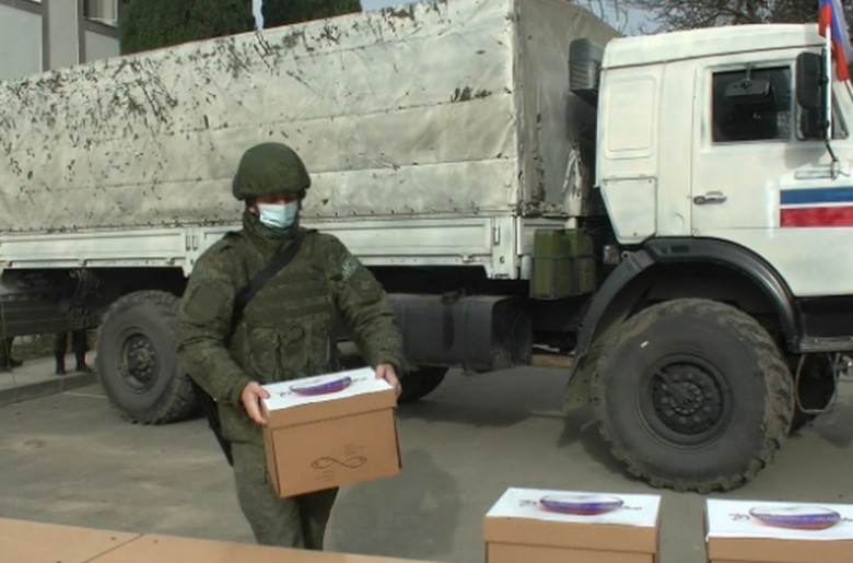 Ռուս խաղաղապահներն առաջին անհրաժեշտության պարագաներից ու սննդամթերքից բաղկացած հումանիտար օգնություն են տրամադրել Մարտակերտ քաղաքի բնակիչներին. ՌԴ ՊՆ