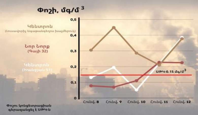 Նշվում է, որ փոշով աղտոտված է հիմնականում Կենտրոն համայնքը, սակայն հունվարի 12-13-ին սահմանային թույլատրելի կոնցենտրացիայից գերազանցումներ դիտվել են նաև Նոր Նորք համայնքում: