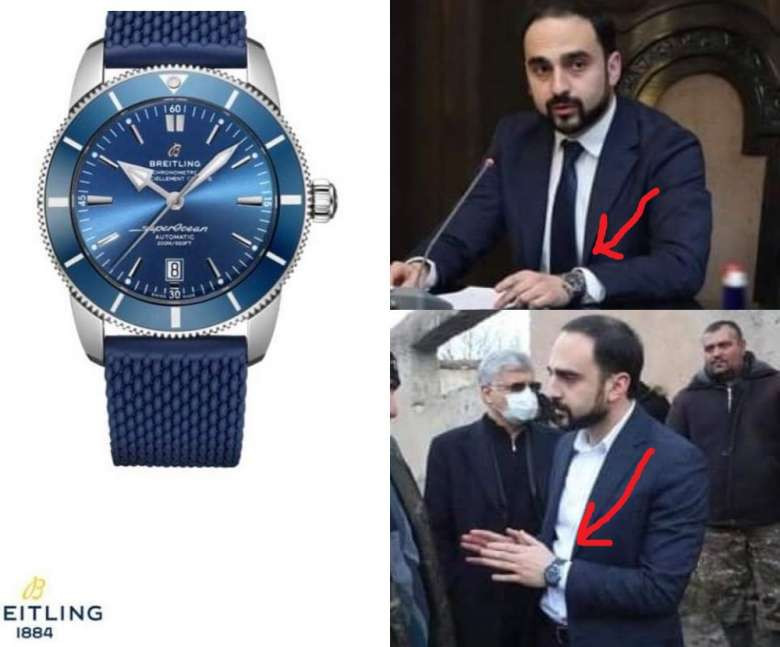 «Սա Ավինյանն է իր 3 000 000 ՀՀ դրամ արժողությամբ ժամացույցով (6 000$)։ Սրանք ըստ նիկոլապաշտների այն նույն ազնիվ, անկաշառ, փողոցից եկած մաքրամաքուր տղաներն են, որոնք եկել են Հայաստանը փրկելու։