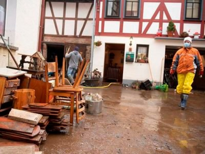 Ֆրանկֆուրտից արեւելք գտնվող Բյոդինգենում բնակիչները փորձել են գիշերը փրկել իրերը գիշերվա ջրի հոսքից առաջացած ցեխից: