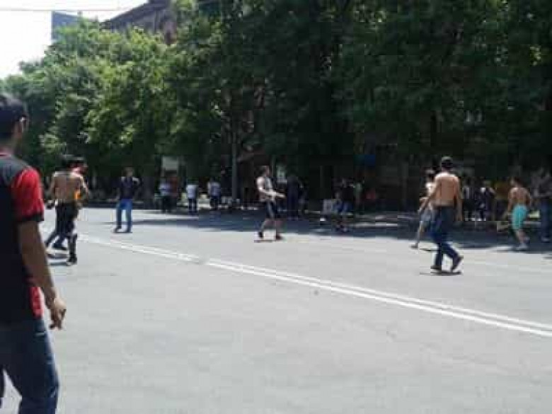 Մի քանի ցուցարարներ մոտ 5 րոպե ֆուտբոլ խաղացին Բաղրամյան պողոտայում:
