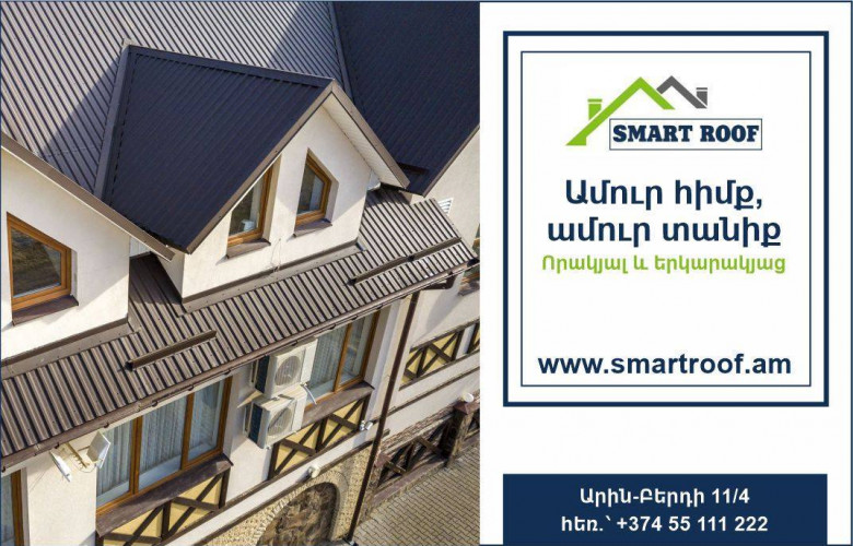 ՀԱՍԱՐԱԿՈՒԹՅՈՒՆԱյն, ինչ առաջարկում է Սմարթ Ռուֆ ընկերությունը, կարող է հետաքրքրել միայն նրանց, ովքեր նախագծում ու կառուցում են ամուր, որակյալ ու գեղեցիկ շենքեր: Սա անգերազանցելի հումք է ժամանակակից նորմերով կառուցող վարպետների համար: Սմարթ ռուֆ-ին գիտեն դեռ 2005-ից, այն ժամանակ՝ որպես Սարմե գրուպ, որը ներկայացնում էր ռուսական աշխարհահռչակ Տեխնոնիկոլ ապրանքանիշը: Մինչ այսօր էլ ընկերությունը մնում է ներկայացուցիչը Հայաստանում, և առաջարկում շինանյութերի մեծ տեսականի՝ ձայնա-, ջրա-, ջերմամեկուսիչ նյութեր, բիտումապոլիմերային տանիքապատման նյութեր, պոլիմերային մեմբրաններ, «Shinglas» ճկուն կղմինդ, Hauberk արտաքին պատերի երեսպատման ճկուն կղմինդր, նաև՝ դեկորատիվ ներկեր: