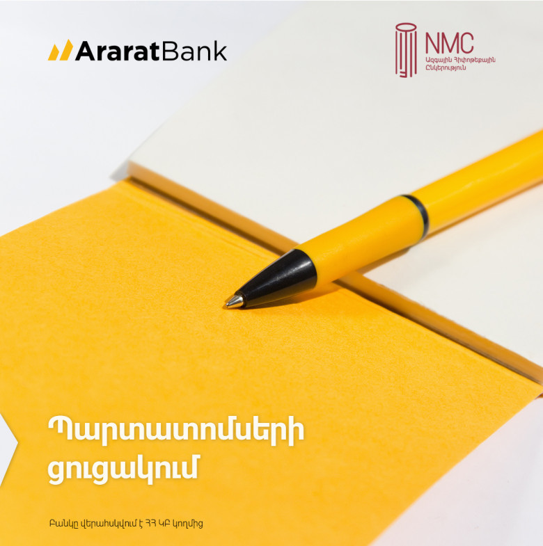 ՀԱՍԱՐԱԿՈՒԹՅՈՒՆԻնչպես նշել են բանկում, «Ազգային հիփոթեքային ընկերություն» ՎՎԿ ՓԲԸ-ի քսանմեկերորդ թողարկման անվանական արժեկտրոնային պարտատոմսերը ցուցակվելու են սույն թվականի մարտի 24-ին Հայաստանի ֆոնդային բորսայի Abond հարթակում։ 2009թ․-ի հունվարից ֆոնդային բորսայի անդամ հանդիսացող ԱՐԱՐԱՏԲԱՆԿ ԲԲ ընկերությունը հանդես կգա նշված պարտատոմսերի շուկա ստեղծողի կարգավիճակում։