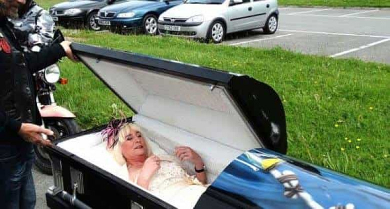 ԼԱՅՖՈւելսում հերթական արտասովոր հարսանիքն է տեղի ունեցել։ Հարսը որոշել է օրիգինալ կատակ անել ու իր հարսանիքին ներկայացել է դագաղի մեջ։ Ջենիֆեր Բակլեֆը ամուսնանում էր առաջին անգամ՝ 58 տարեկանում։ Նա, դագաղի մեջ իր հարսանիքին գալով, որոշել էր ստուգել բարեկամների նյարդերը՝ նրանց հետ նմանատիպ հումոր անելով։ Բակլեֆի ամուսինը հավանել է կնոջ հումորը։
