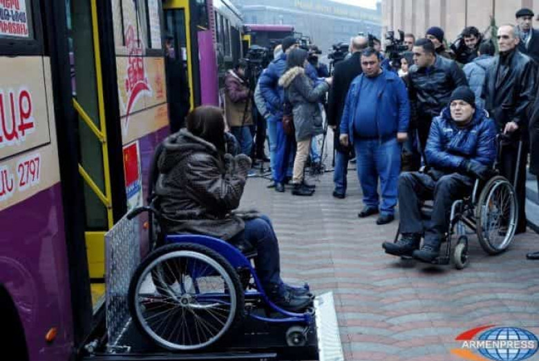 ՀՀ կառավարության համապատասխան որոշման պահանջների համաձայն՝ 2014թ. Երևանի քաղաքապետը հանձնարարական էր տվել քաղաքային ավտոբուսները համապատասխան սարքավորումներով զինելու վերաբերյալ, որպեսզի հենաշարժողական խնդիրներ ունեցող մարդիկ կարողանան մատչելի ձևով օգտվել քաղաքային տրանսպորտից: Արդյունքում 2015թ. սկզբին մայրաքաղաքի տասը ավտոբուս վերազինվեց անհրաժեշտ սարքավորումներով: