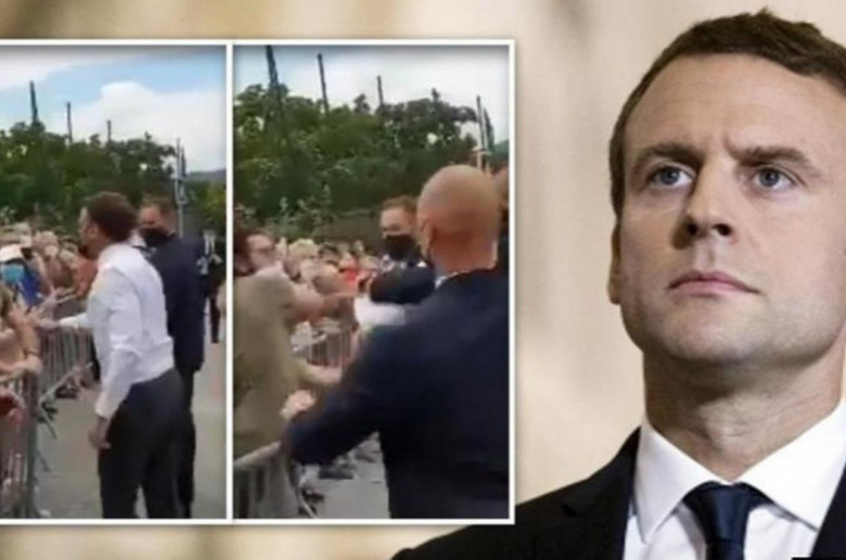 Համացանցում տարածվել էր տեսանյութ, ըստ որի` Ֆրանսիայի ղեկավարը մոտենում է իրեն սպասող մարդկանց, բռնում է տղամարդկանցից մեկի ձեռքը, սակայն վերջինս մյուս ձեռքով ապտակում է նախագահին: Այնուհետև իրավիճակին միջամտում են թիկապահները, որոնք նախագահին հեռացնում են, իսկ տղամարդուն` բռնում: