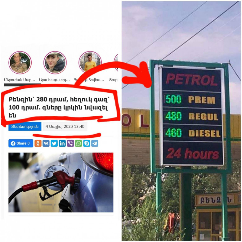 Ի դեպ, համեմատելու համար ասեմ, որ հարևան Վրաստանում բենզինի 1 լիտրը գրեթե հայաստանյան գներին է մոտենում, իսկ Իրանում բենզինի 1 լիտրը 33 դրամ է...