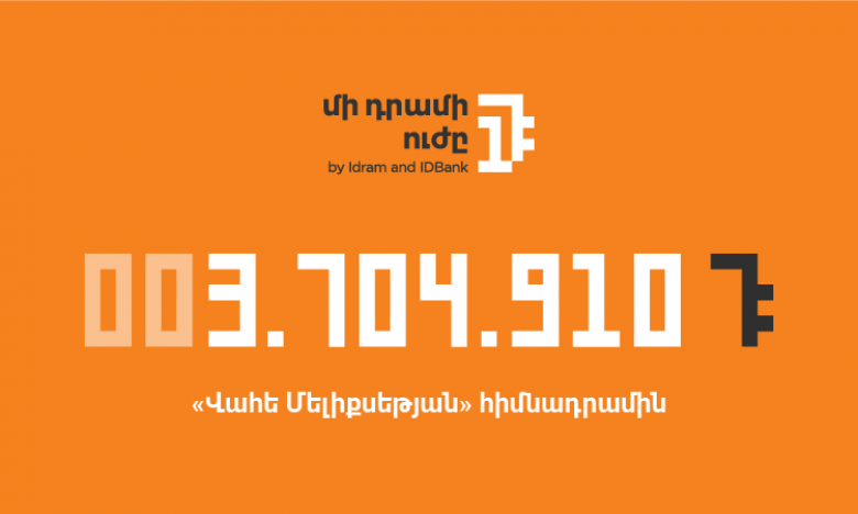 ՏՆՏԵՍՈՒԹՅՈՒՆ“The Power of One Dram” initiative of IDBank and Idram has summed up the results of the next program: the entire amount of “one dram” gathered in August from user payments, AMD 3.701.910, was transferred to “Vahe Meliksetyan” foundation.
