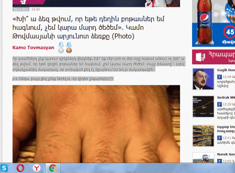ԲԼՈԳՍույն թվականի դեկտեմբերի 20-ին, բլոգգեր Կամո Թովամասյանը, իր Ֆեյսբուքյան միկրոբլոգում հրապարակել է լուսանկար եւ մակագրել.