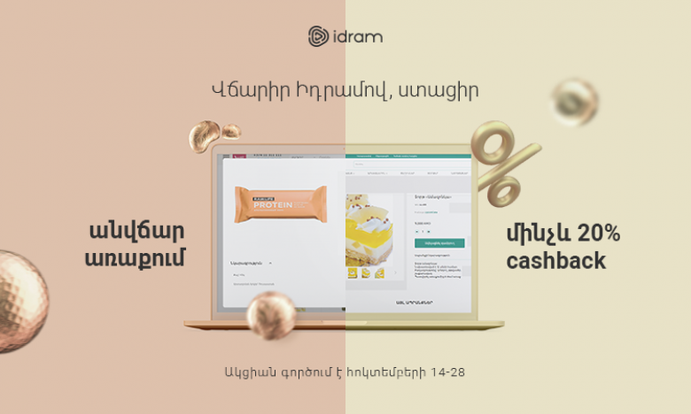 ՀԱՍԱՐԱԿՈՒԹՅՈՒՆԵթե սիրում եք առցանց խանութներից գնումներ կատարելիս վճարել Իդրամով կամ դեռ նոր եք պատրաստվում կատարել առաջին Ձեր վճարումը, ապա այս նորությունը Ձեզ հաստատ կուրախացնի։ Այս տարվա հոկտեմբերի 14-ից 28-ը Իդրամով կատարեք վճարումներ առցանց խանութներում և ստացեք հաճելի անակնկալներ՝ անվճար առաքման կամ քեշբեքի տեսքով։